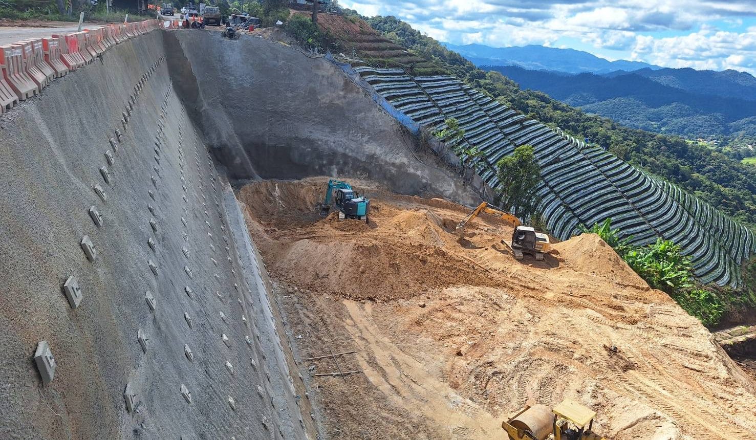 | รายละเอียดโครงการ | - Earth Excavation - Selected Material (Back fill) for Reinforced Soil Slope - Drainage Layer - Reinforcement Erosion Control - Galvanized Terramesh - Soil Nail - Erosion Slope Protection - Asphalt Concrete Wearing Course - Concrete Barrier with R.C. U-Ditch |