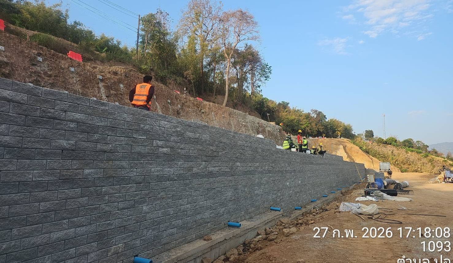 | รายละเอียดโครงการ | - Earth Excavation - Selected Backfill - Asphalt Concrete Wearing Course - Nonwoven Geotextile - Horizontal Drain - Modular Block - Geogrid - Drainage Cell with Nonwoven Geotextile - Soil Nail |
